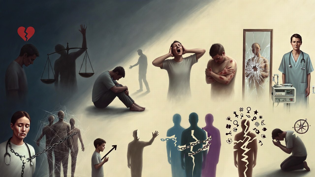 Examples: A person in a long-term abusive relationship emerges with fragmented identity, struggling to trust even kind gestures. Childhood in a dysfunctional home leads to adult patterns of self-harm.